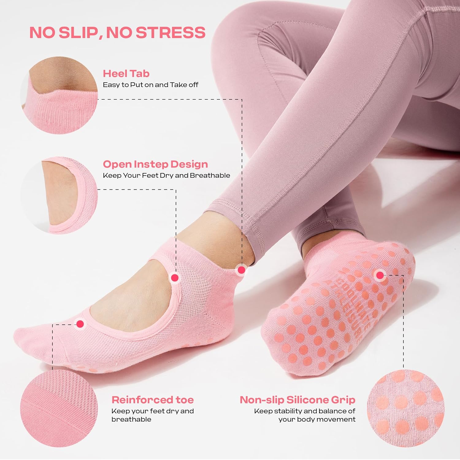 – **Non-Slip Grip Design**: Equipped with strong silicone grips on the soles, these socks provide excellent traction, ensuring stability and balance during yoga, Pilates, and barre workouts. Forget about slips and focus entirely on your practice!